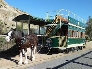 The caravan park was quite busy, which is not what we are used to. It was the Queen's Birthday long weekend so lots of South Aussie's had obviously headed for the coast. Not surprising as Victor Harbor is a beautiful beach town. We walked up the Bluff to get some amazing views of the town and area, climbing over some pretty big boulders to get to the top. The town is on the rolling hills looking out over Encounter Bay. It reminded us of a coastal English village.